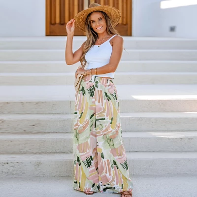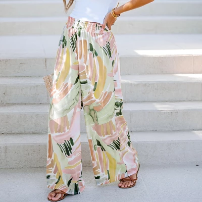 These Abstract Print Paperbag Pants in a multi-color make a versatile wardrobe pick. Made from lightweight fabric for a comfortable drape, the baggy trousers feature a wide-leg cut with a relaxed fit to bring comfort and style to your look. Make a statement in this pair of woven pants featuring an abstract print, and a smocked paper bag high-rise waist. Pair them with plain tees or another kind of top along with your choice of footwear to dress your look up or down.Product Code: CAA02D3B001PKModel Wearing Size: SHeight:5โ6″ in / 168 cm Bust:34 in / 86 cmWaist:25 in / 63 cm Hips:30 in / 76 cm