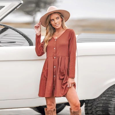 Elevate your style with our Button-Front Long Sleeve Mini Dress. This dress, in a captivating terra cotta hue, boasts a chic button-front detail that adds a touch of sophistication to your look. Step into this mini dress and embrace its versatile charm, perfect for any occasion where you want to radiate elegance and confidence.Product code: CAA05A3J064KK