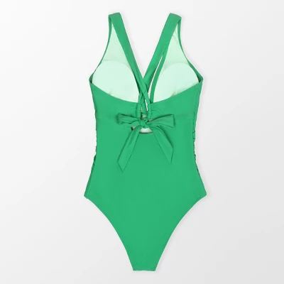 The Shirred Halter Plus Size One Piece Swimsuit will turn some heads at the beachside. The vintage-inspired one piece features halter ties, adjustable cross back straps, and a plunging neckline, making it the perfect choice for a stylish and confident day by the waves. Crafted in a lush green thatโs generously shirred in the center to flatter your feminine form.Product Code: CAPF1103GG